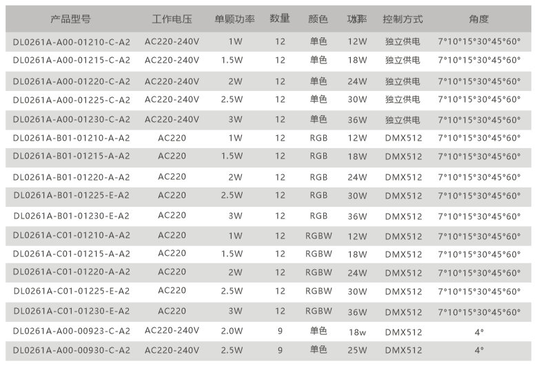 ◆ 光束角配光可選:4° 7°10°15°30°45°60°