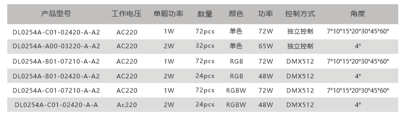 ◆ 光束角配光可選:4° 7°10°15°30°45°60°