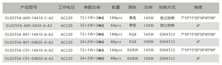 ◆ 多種配光方案可選,滿足不同場景照明;光束角配光可選:4° 7°10°15°30°45°60°