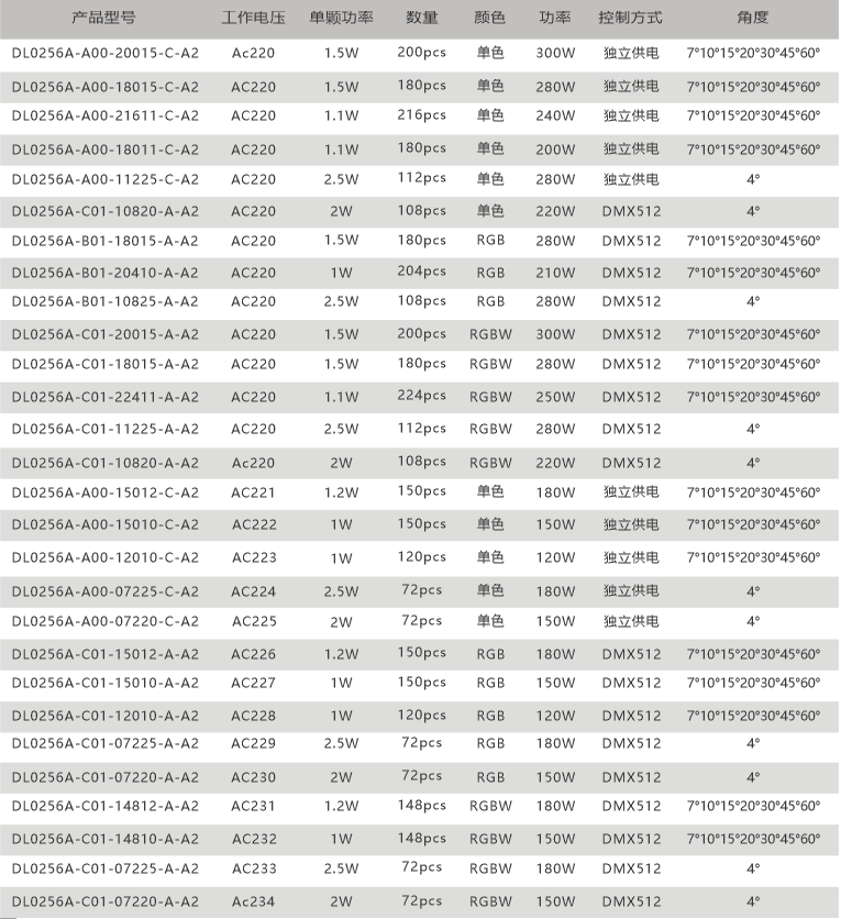 ◆ 多種配光方案可選,滿足不同場景照明;光束角配光可選:4° 7°10°15°30°45°60°